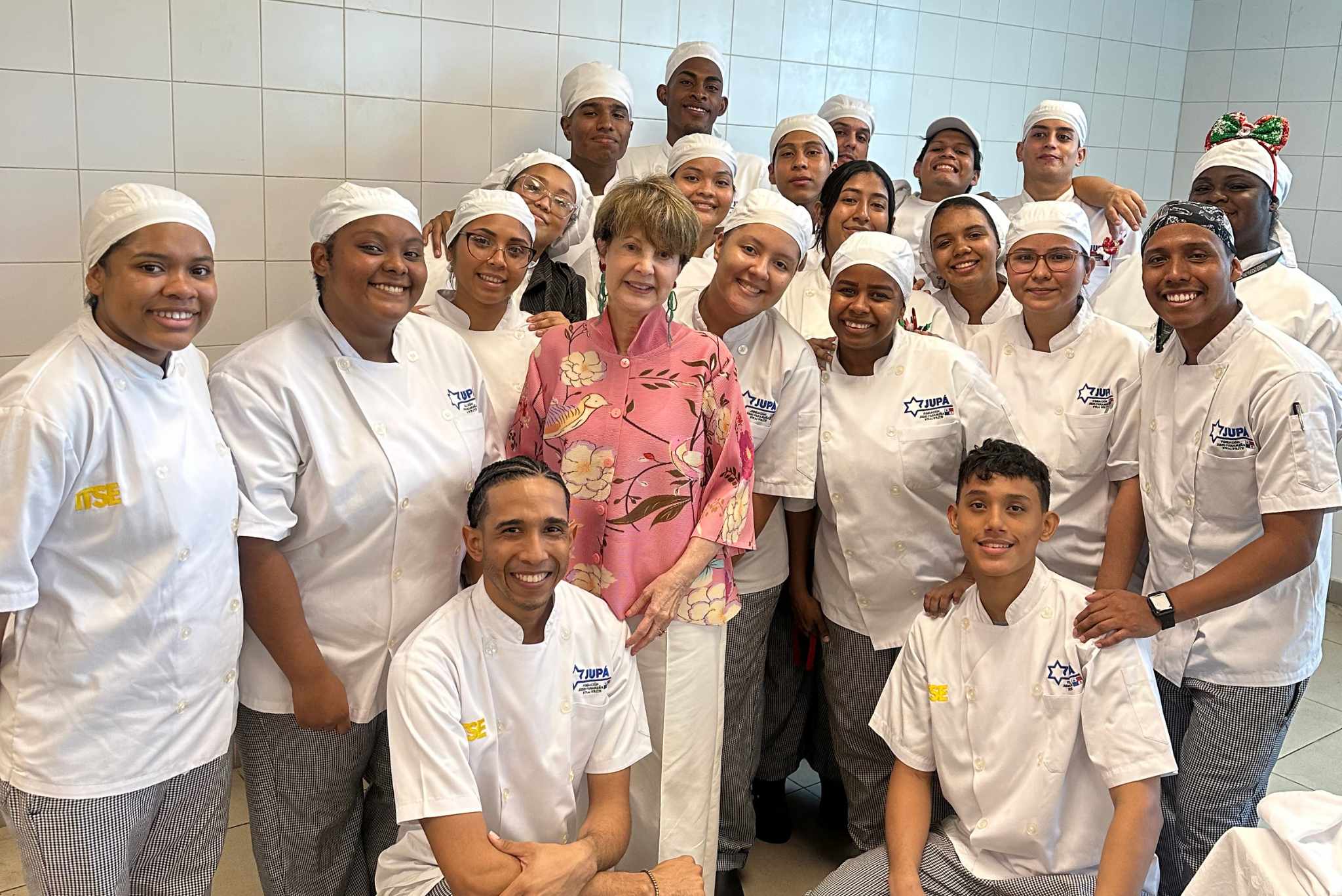 Para evaluar y dar su retroalimentación sobre los platos, se invitó a un grupo de reconocidos chefs, padrinos y directivos de la Fundación JUPÁ, propietarios de restaurantes y figuras destacadas del ámbito gastronómico en Panamá. Divididos en grupos, los estudiantes explicaron detalladamente los contenidos de cada platillo y su proceso de elaboración.