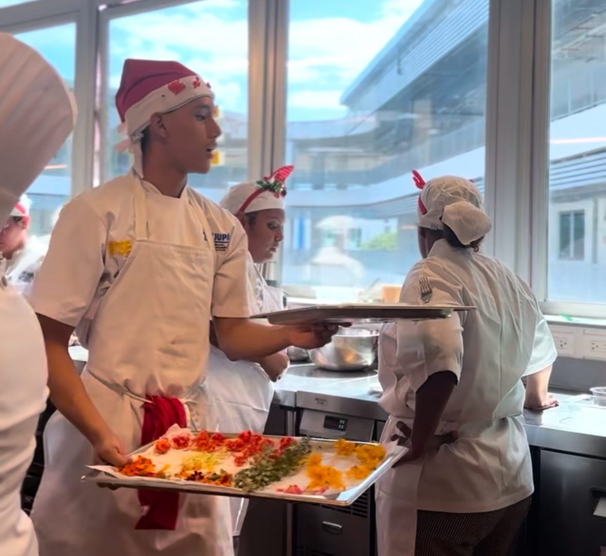 Con la temática «Mar y Tierra», estos talentosos chicos —quienes aún cursan su primer año— diseñaron y elaboraron un menú completo que incluyó entrada, plato fuerte y postre, evidenciando no solo su habilidad técnica, sino también su pasión por el arte culinario.