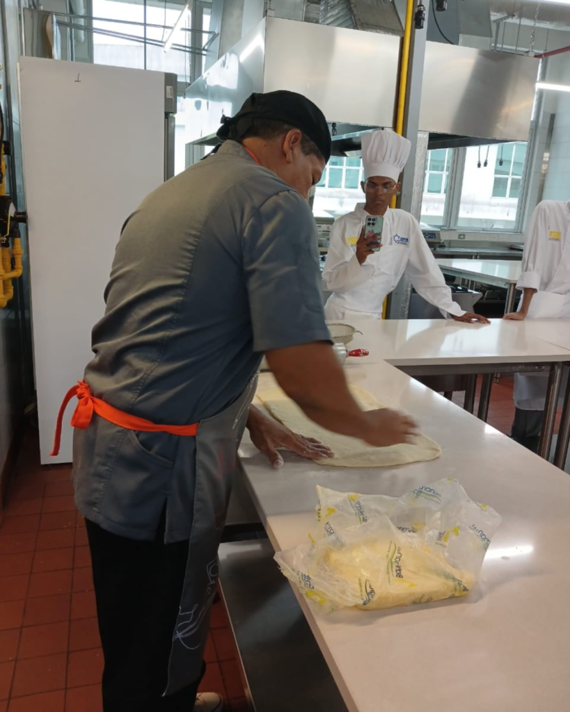 La jornada contó con la guía del panadero Saturnino Rivas, de la empresa Harinas del Istmo. Durante el taller, los estudiantes aprendieron de primera mano técnicas fundamentales para la elaboración y el manejo adecuado de este tipo de masa.