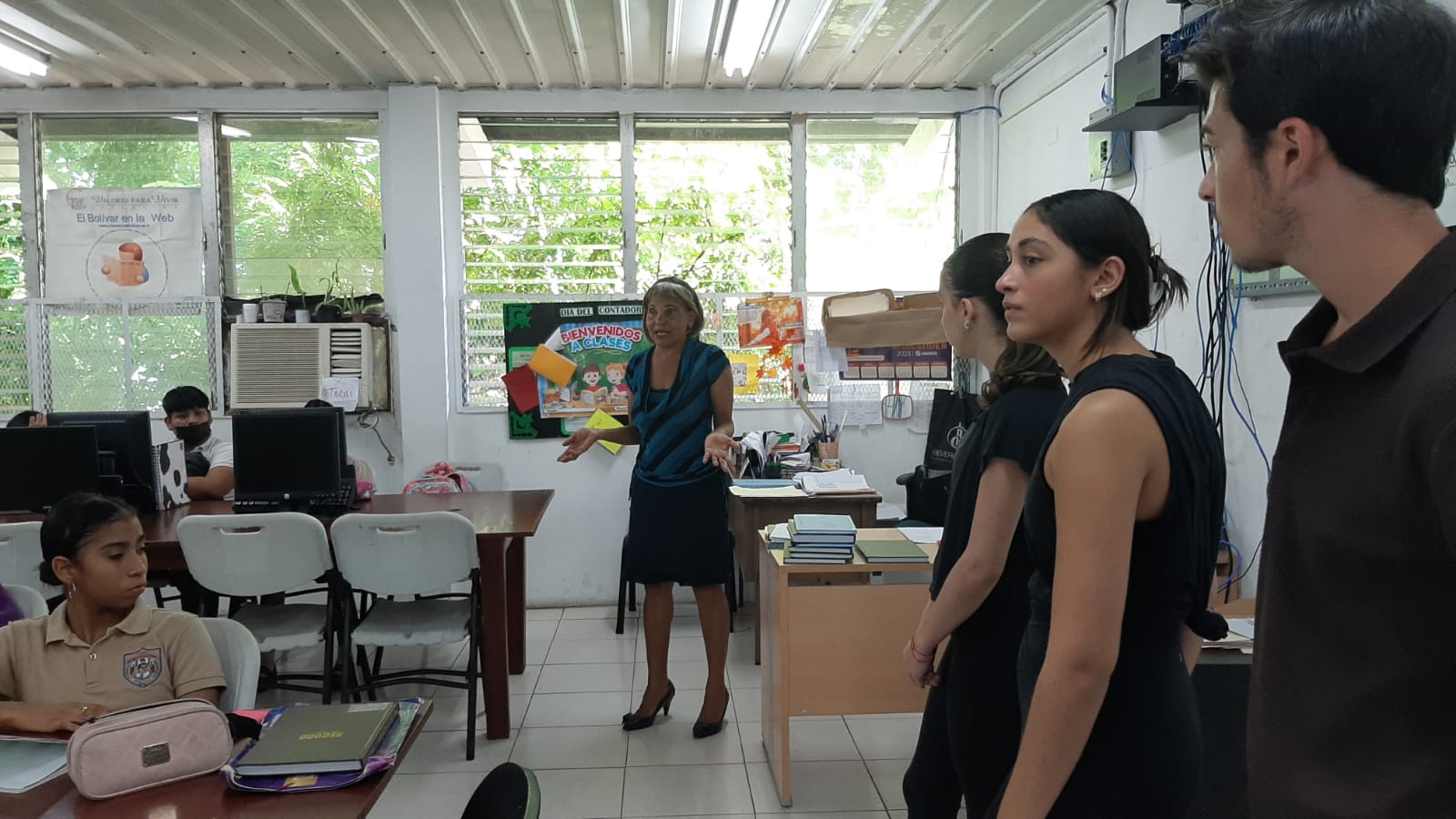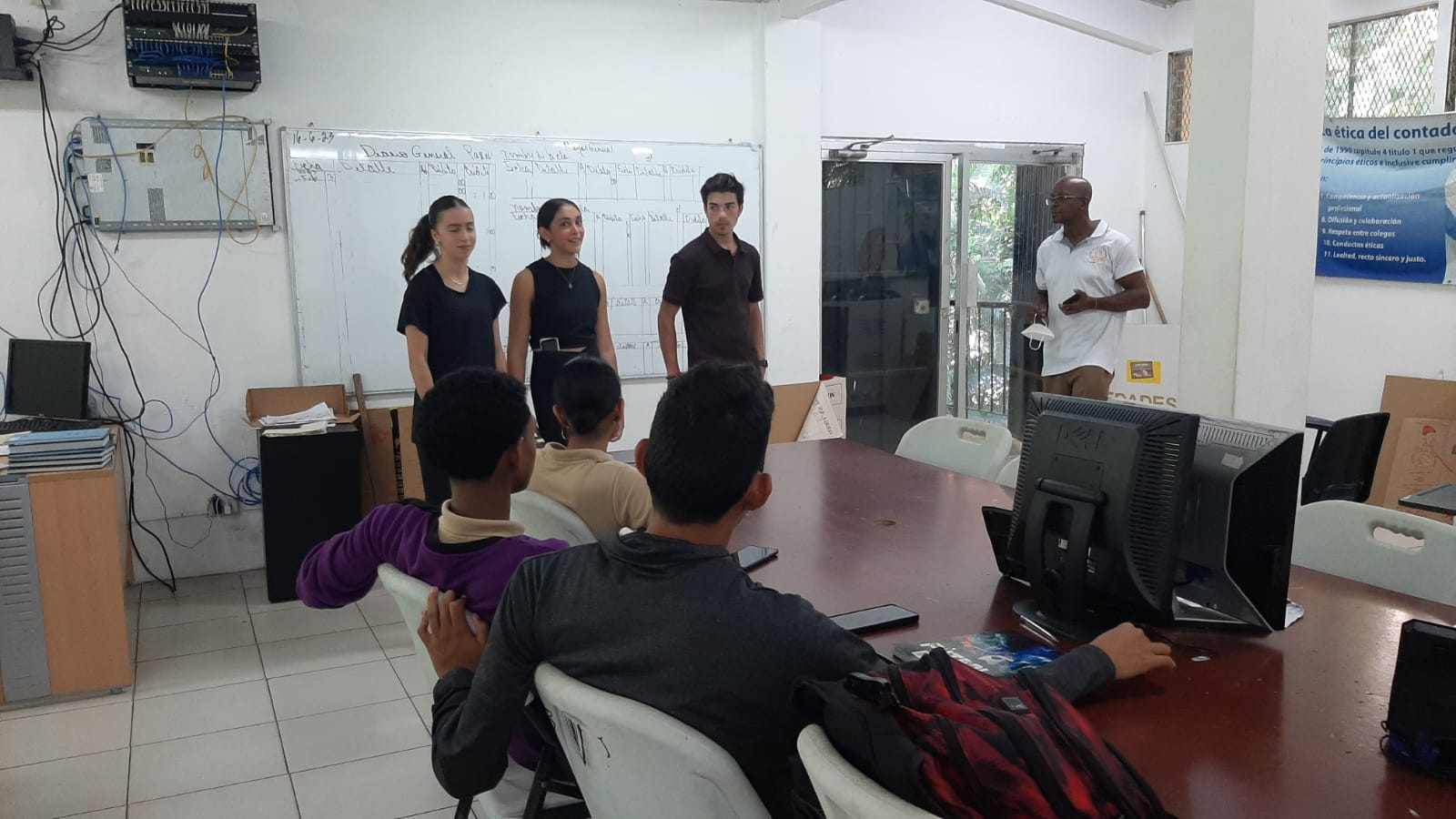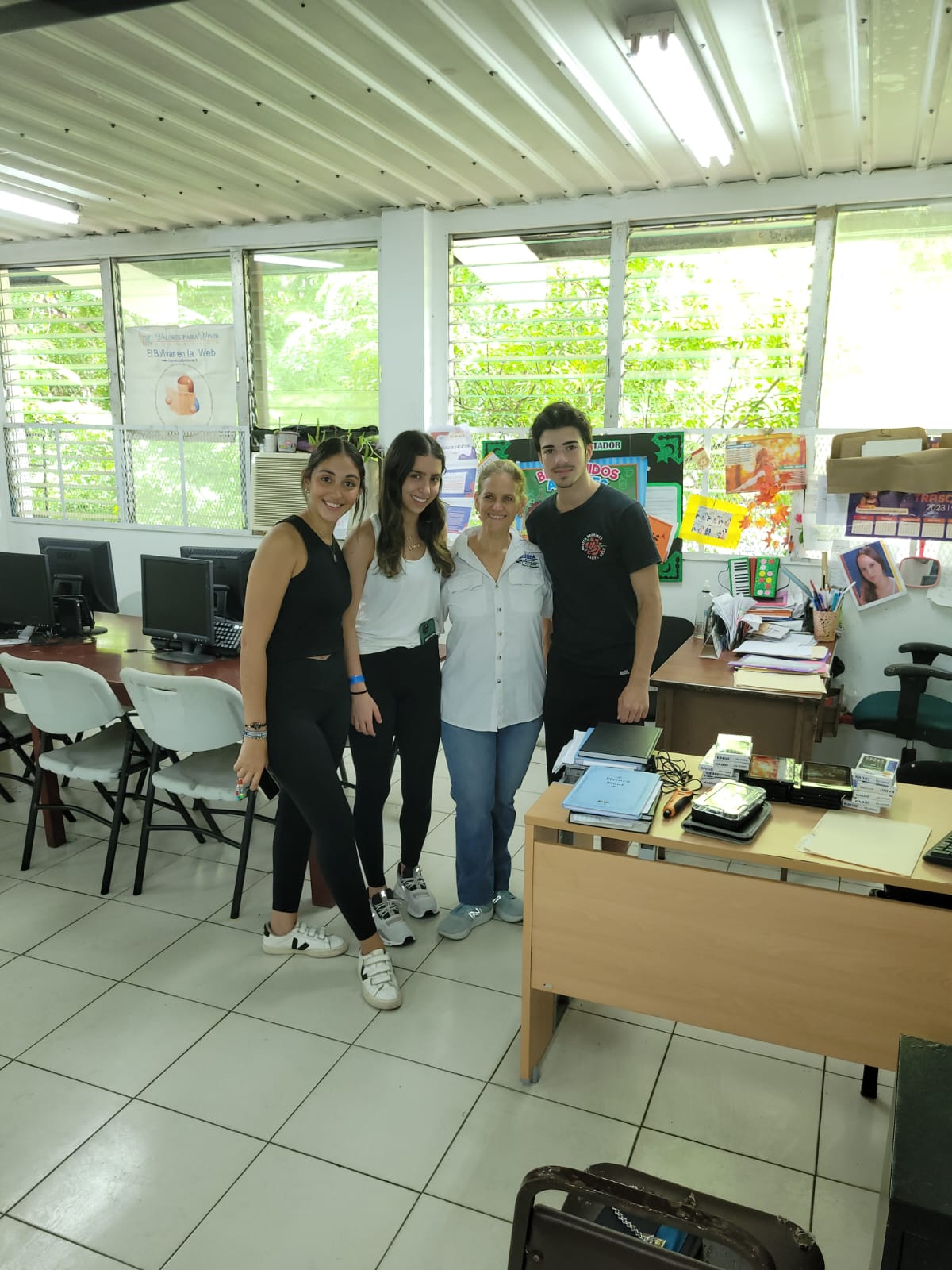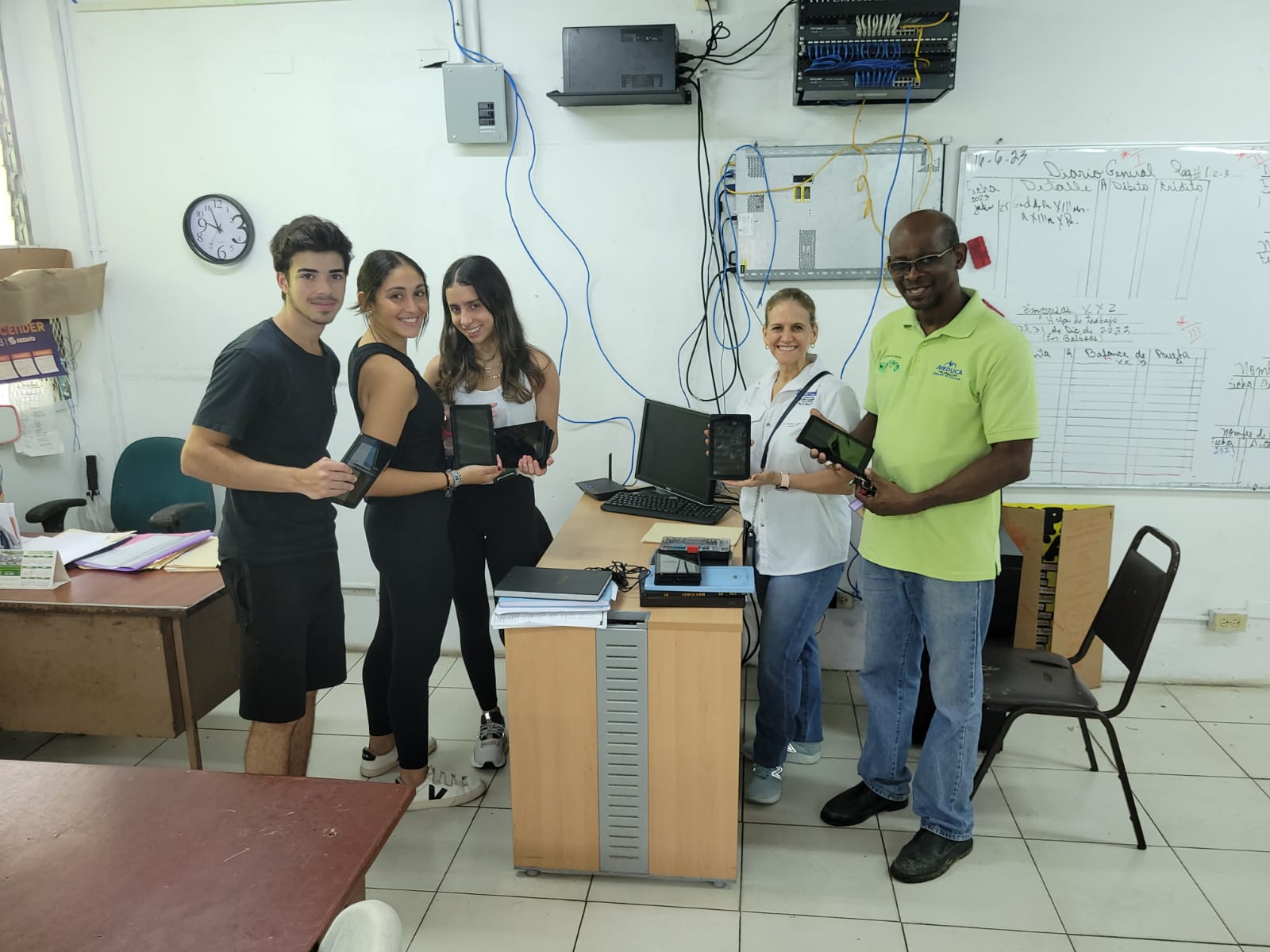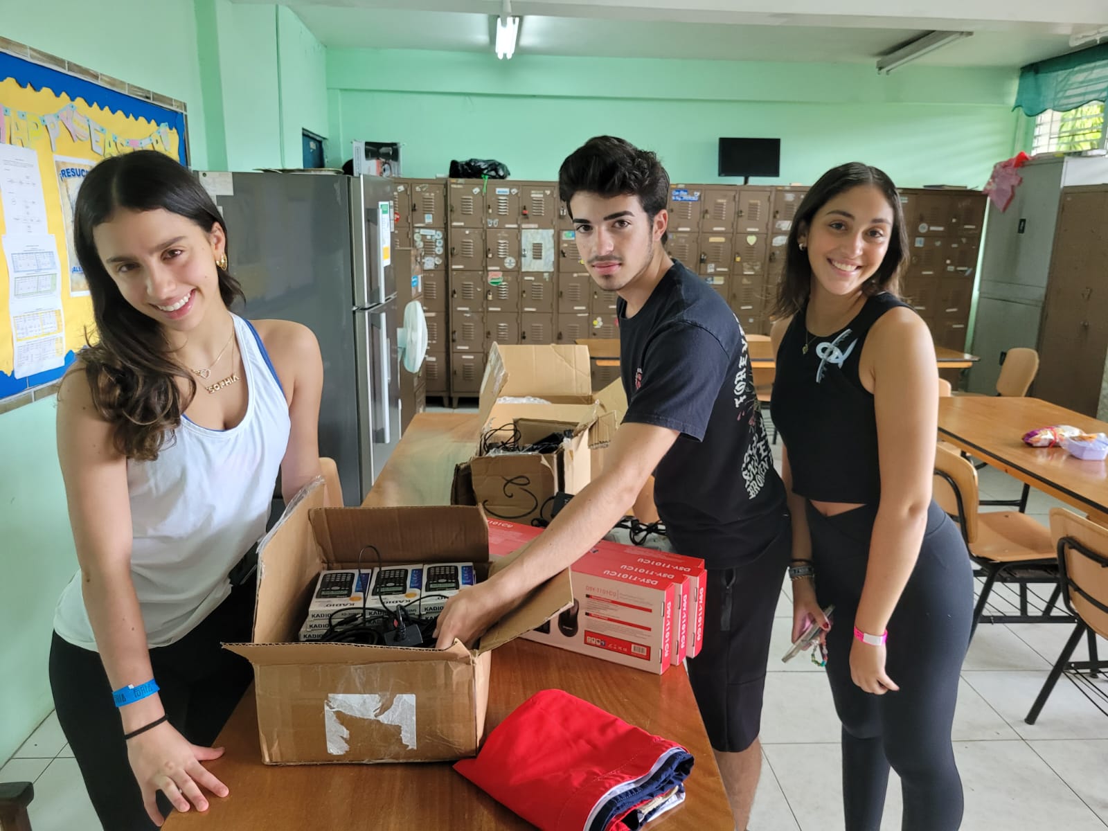 Joey, Debora y Sophia visitaron la escuela en tres oportunidades. Comenzaron haciendo un recorrido que contó con el apoyo de los jóvenes estudiantes de Bachiller en Turismo. Al ver las necesidades en el área de tecnología, realizaron una rifa y campaña de recaudación para conseguir herramientas que permita una mejor educación para todos los estudiantes de la escuela. Hicieron entrega de equipos tecnológicos de última generación, que serán de gran utilidad para los estudiantes de la institución, y que les dará mayor oportunidad de tener un aprendizaje de calidad. Entre los equipos donados están: 5 computadoras, 4 proyectores, 20 tablets, 24 calculadoras científicas y 25 audífonos.