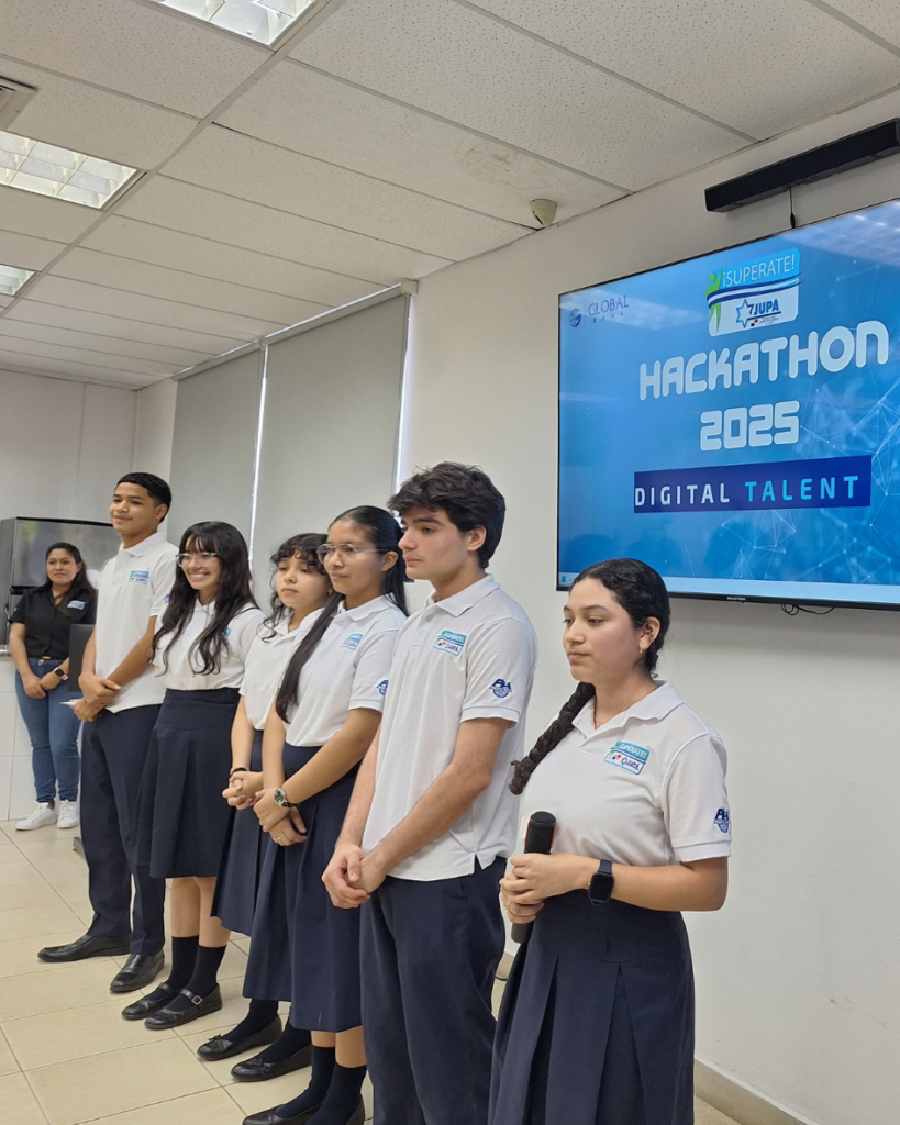 El pasado 26 de agosto, nuestros estudiantes Juniors de ¡Supérate! JUPÁ presentaron sus proyectos Digital Talent, demostrando talento, innovación, creatividad, manejo del idioma inglés y un destacado uso de herramientas digitales. El evento contó con la presencia de padres de familia, voluntarios, miembros de la junta directiva y profesionales de nuestros padrinos Global Bank e Inmobiliarias Pacific Hills, quienes pudieron conocer de cerca las ideas y soluciones que nuestros jóvenes desarrollaron pensando en generar un impacto positivo en la sociedad. Felicitamos a cada uno de los jóvenes por inspirarnos con su trabajo, dedicación y visión. Su esfuerzo es una prueba de que, cuando se combinan el conocimiento, la creatividad y el compromiso social, el futuro se enciende con fuerza.